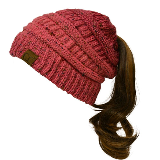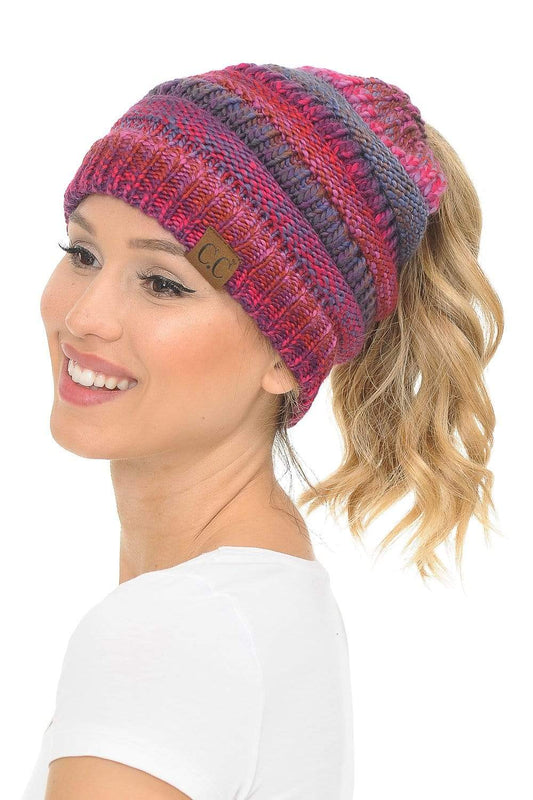 C.C MB816 - Soft Stretch Cable Knit Warm Ponytail Hat 4 Toned Mixed Multi Color Beanie