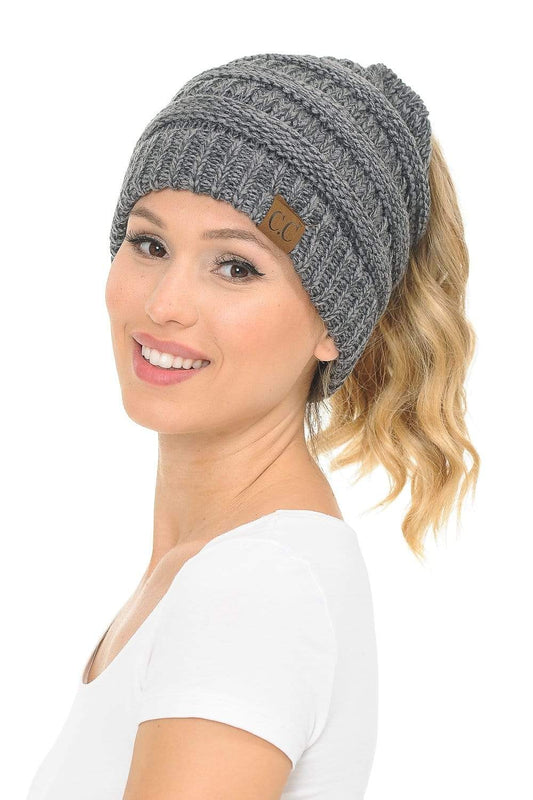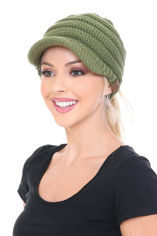 C.C MB131 - BeanieTail Warm Knit Messy High Bun Ponytail Visor Beanie Cap
