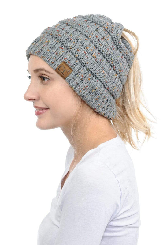 C.C MB33 - Soft Stretch Cable Knit Warm Hat High Bun Ponytail Confetti Beanie