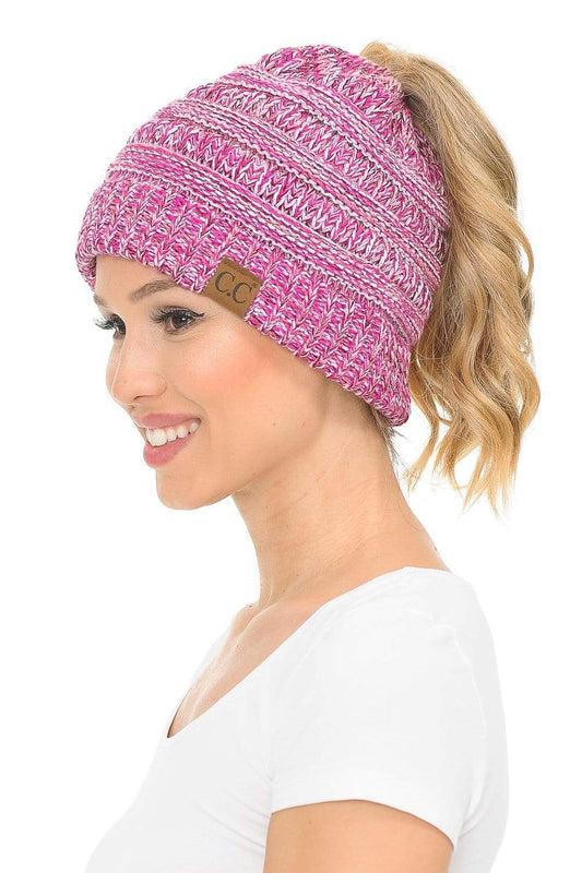 C.C MB6242 - Soft Stretch Cable Knit Warm Ponytail Hat 3 Toned Mixed Multi Color Beanie