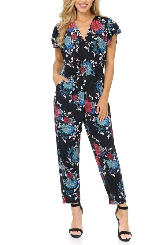 Auliné Collection Womens Short Cap Sleeve V-Neck Long Pants Romper Jumpsuit