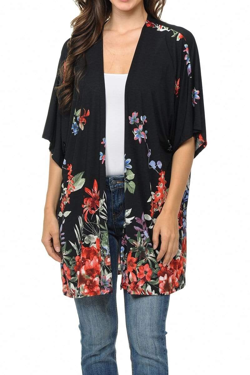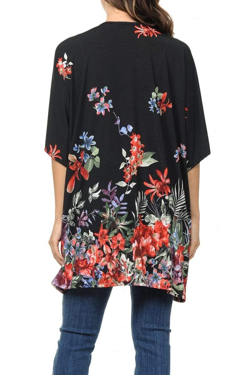 Auliné Collection Womens USA Made Casual Cover Up Cape Gown Robe Cardigan Kimono, Rainforest Floral